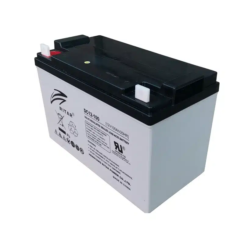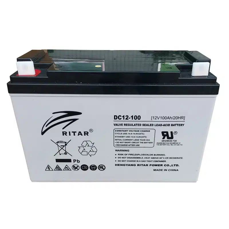 باتری یو پی اس ۱۲ ولت ۱۰۰Ah برند RITAR مدل DC12-100 یک باتری سیلد اسید (VRLA) از نوع دیپسایکل است که برای استفاده در سیستمهای یو پی اس، انرژی خورشیدی، خودروهای برقی و تجهیزات مخابراتی طراحی شده است. این باتری با ظرفیت ۱۰۰ آمپر ساعت و ولتاژ ۱۲ ولت، قابلیت تأمین جریان طولانیمدت را دارد و گزینهای مناسب برای کاربردهای نیازمند تخلیه عمیق و مکرر است.